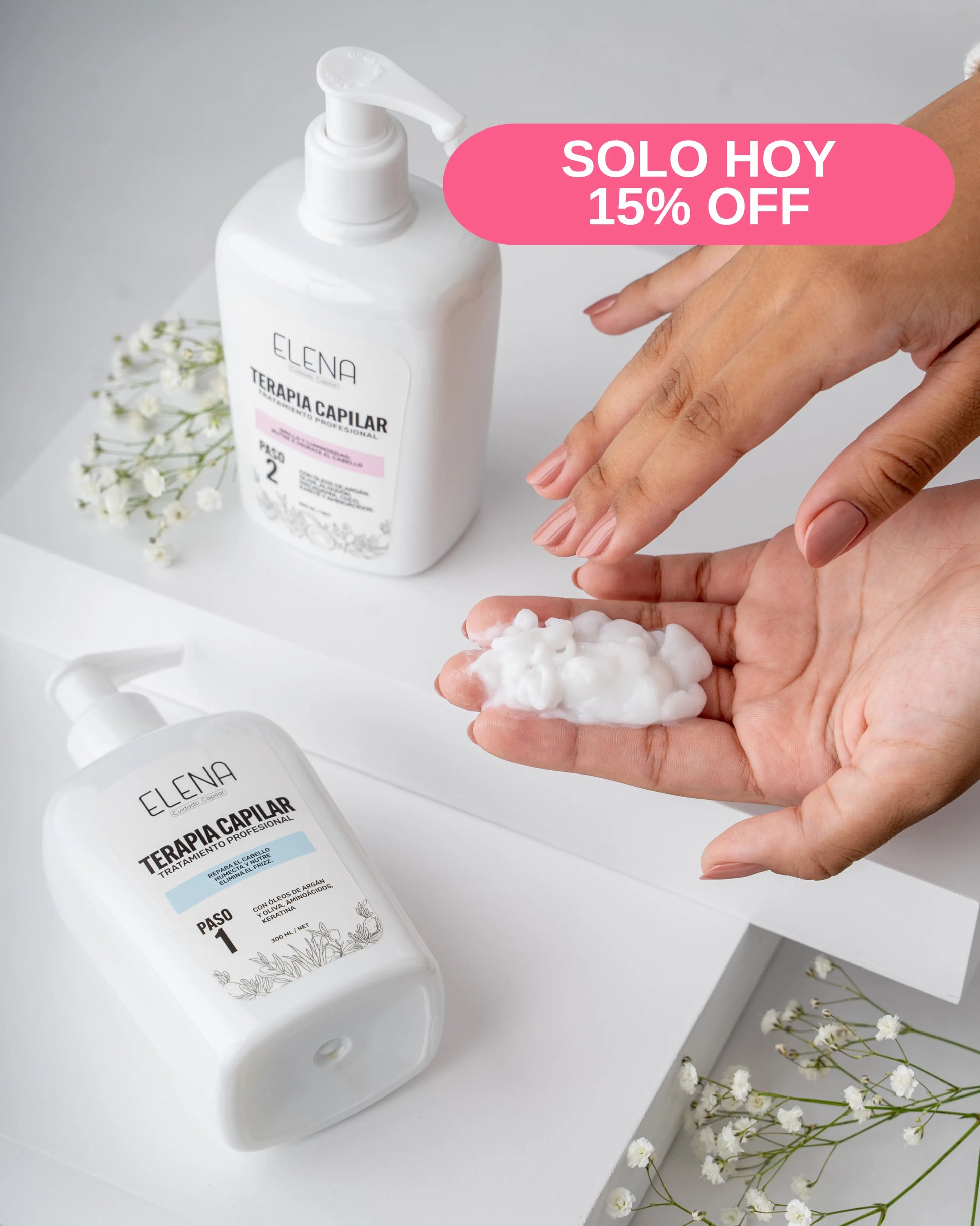 Modo de Aplicación del Tratamiento Profesional Anti-Frizz Paso 1 y Paso 2.